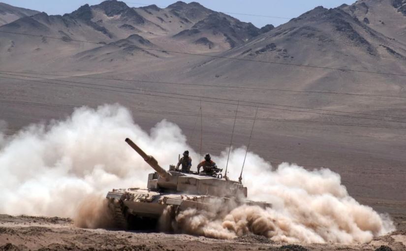 مبارزة دبابات Leopard 2A4 التشيلية في قتال محاكي بنظام الليزر Saab BT46