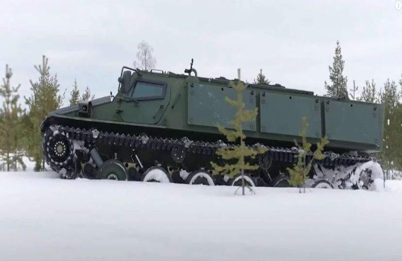 Patria تستعرض قدرة مركبة مجنزرة جديدة صالحة لجميع التضاريس على المناورة في الغابات المغطاة بالثلوج