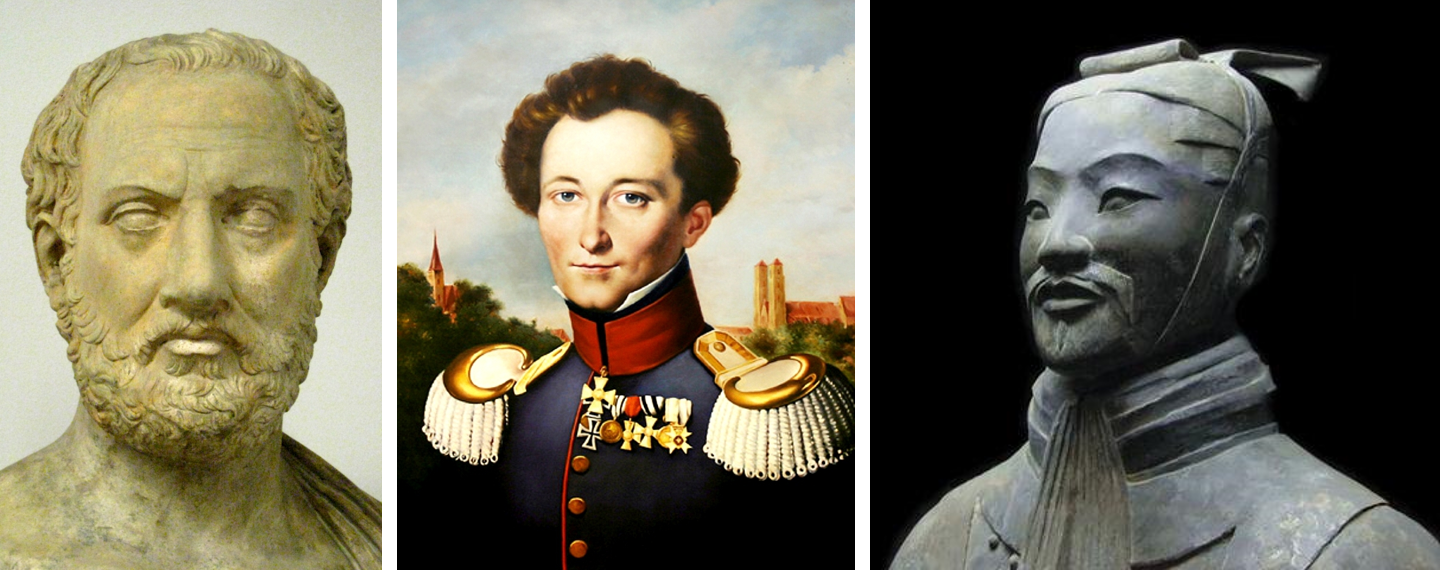 تشكل أعمال هؤلاء المؤلفين الثلاثة حجر الأساس للدراسات الاستراتيجية ومع ذلك فإن القانون الدولي غائب بشكل واضح في جميع أعمالهم