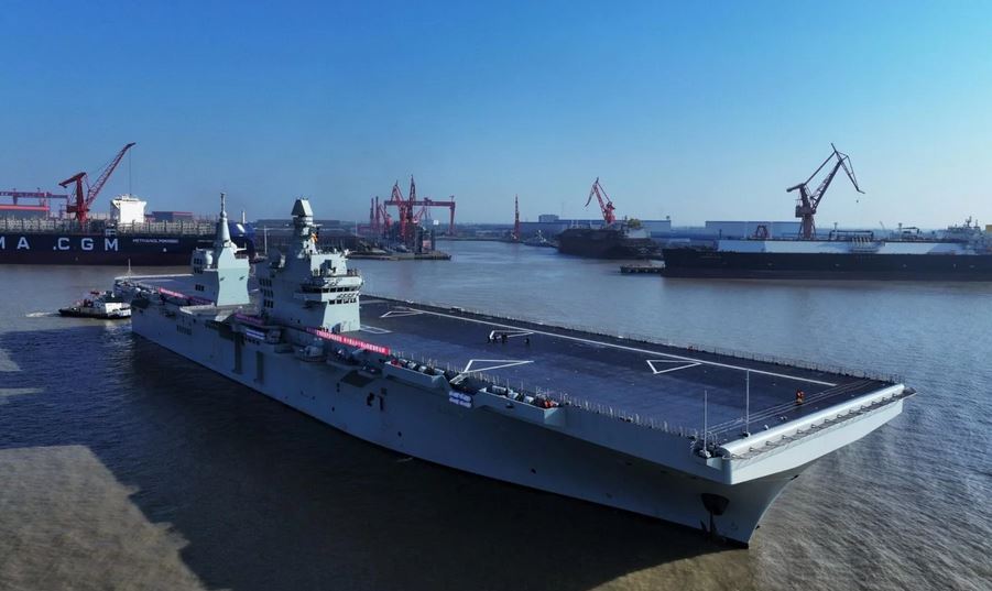 سفينة الهجوم البرمائية الصينية "سيتشوان" من طراز 076 حاملة الطائرات المسيرة المستقبلية تبدأ أولى تجاربها البحرية
