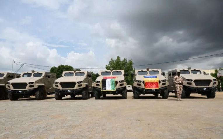على نفس المنوال، في أوائل عام 2021، سلمت فرنسا ما لا يقل عن تسع دبابات خفيفة من طراز ERC-90 Sagaie إلى تشاد، لاستخدامها في عمليات حفظ السلام ومكافحة الإرهاب. تم تسليح ERC-90 Sagaie بمدفع رئيسي عيار 90 ملم ومدفعين رشاشين عيار 7.62 ملم.